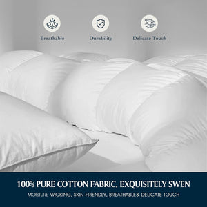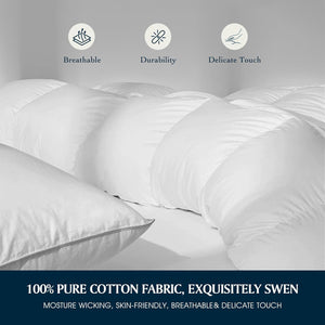 - 【Luxury Feather Fiber & Down Fiber Comforter】This duvet features a filling composed of 90% white goose feather fiber and 10% white goose down fiber. special FreshLoft technical processing, the down and feathers are made hypoallergenic. The premium filling has passed OEKO-TEX Certification, ensuring it is fluffy and odorless. Additionally, the duvet comforter is crafted from 100% cotton fabric, which is soft, natural, plush, and breathable, providing a noiseless and super cozy night's sleep.
