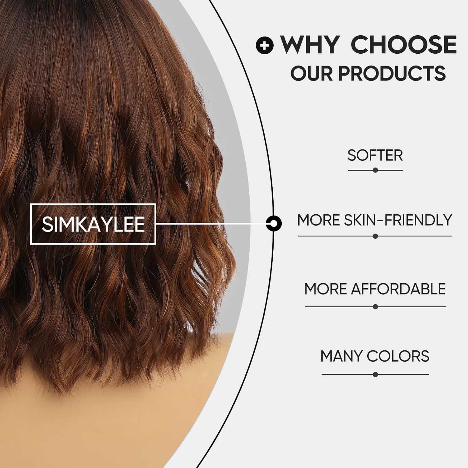 - 【Premium Material】:The short wavy wig is made of high-temperature resistant synthetic fiber similar to human hair.The hairline is made hand-tied, which makes the hair look more real. Easy to comb and not easily tangle and hair loss.
