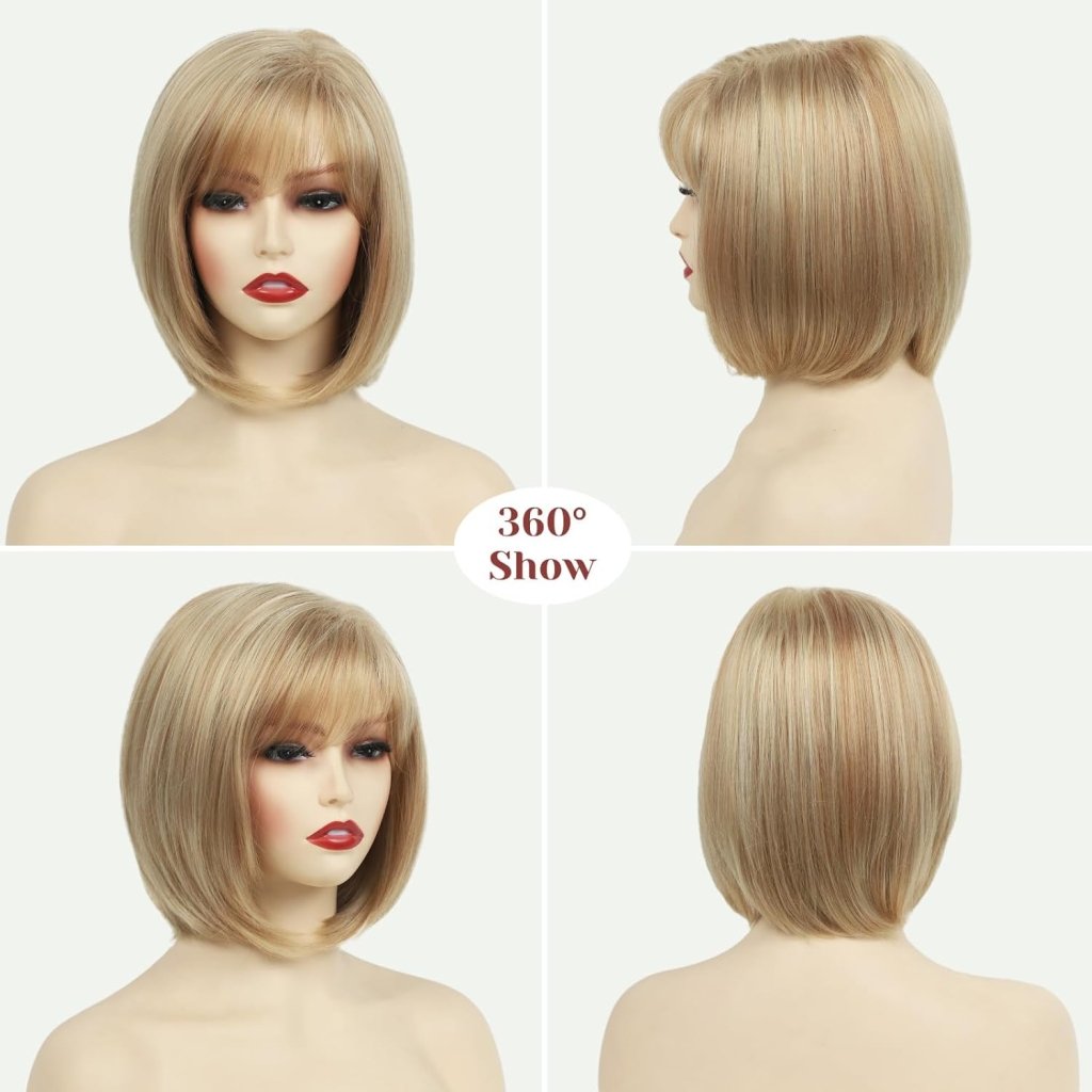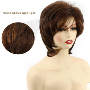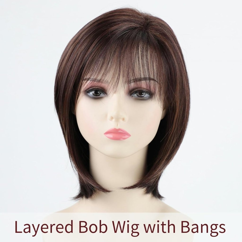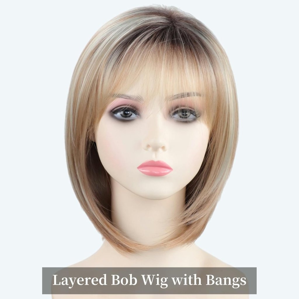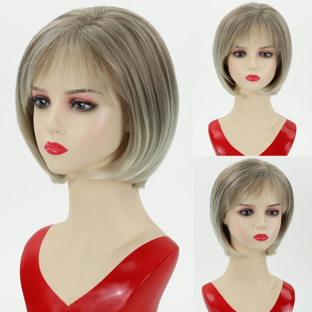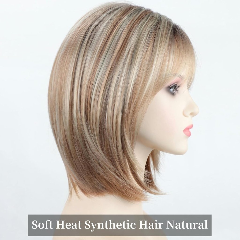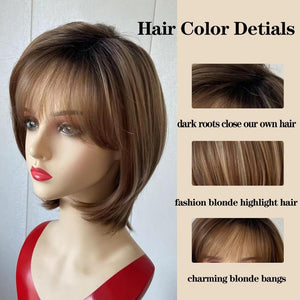 Short Brown Bob Wigs for Women Brown Mixed Blonde Synthetic Wig