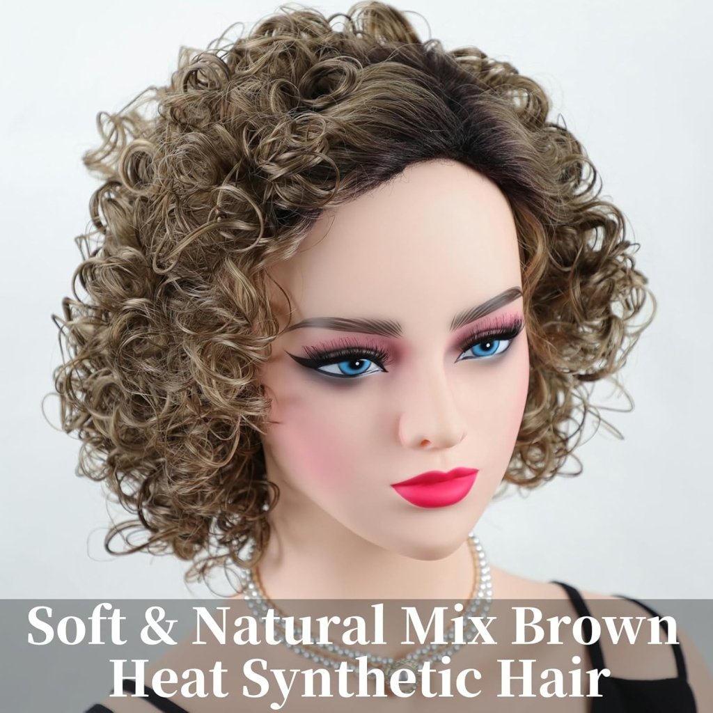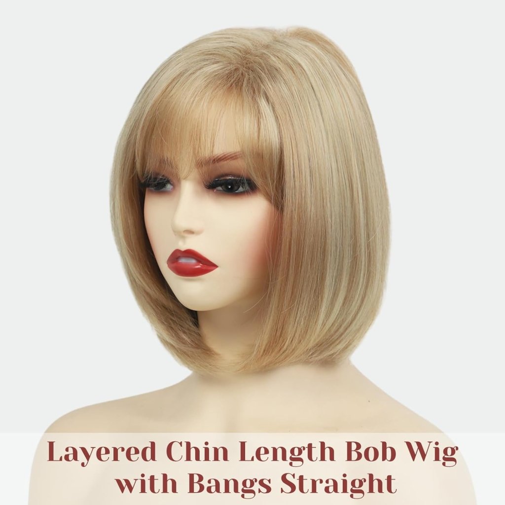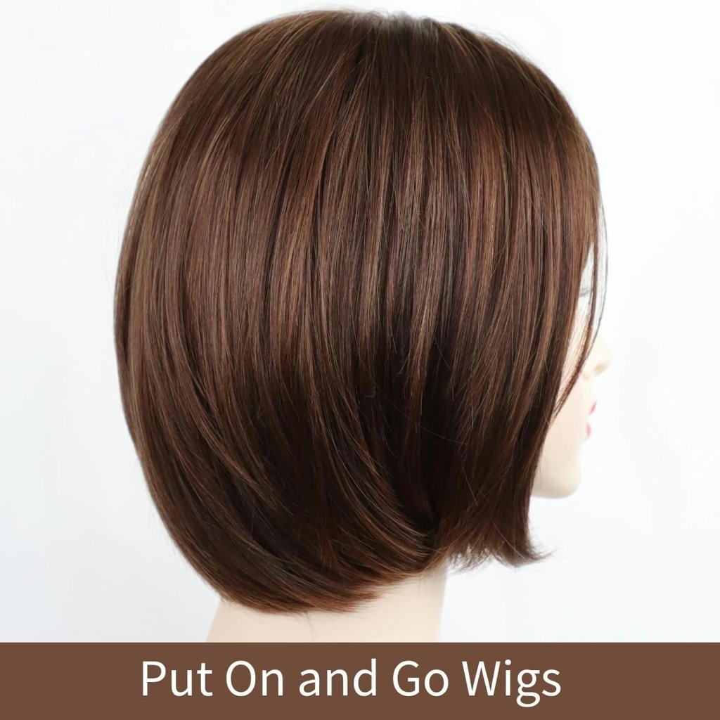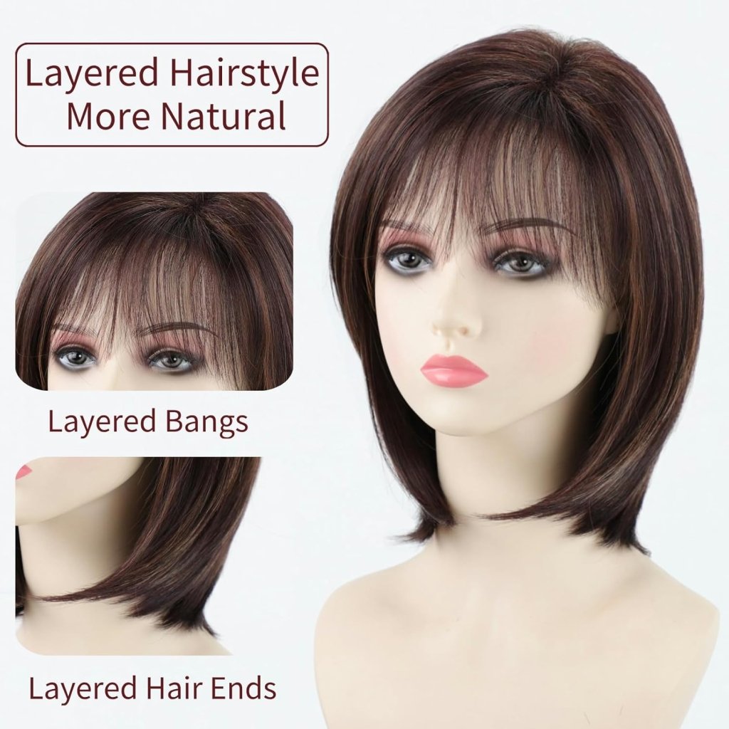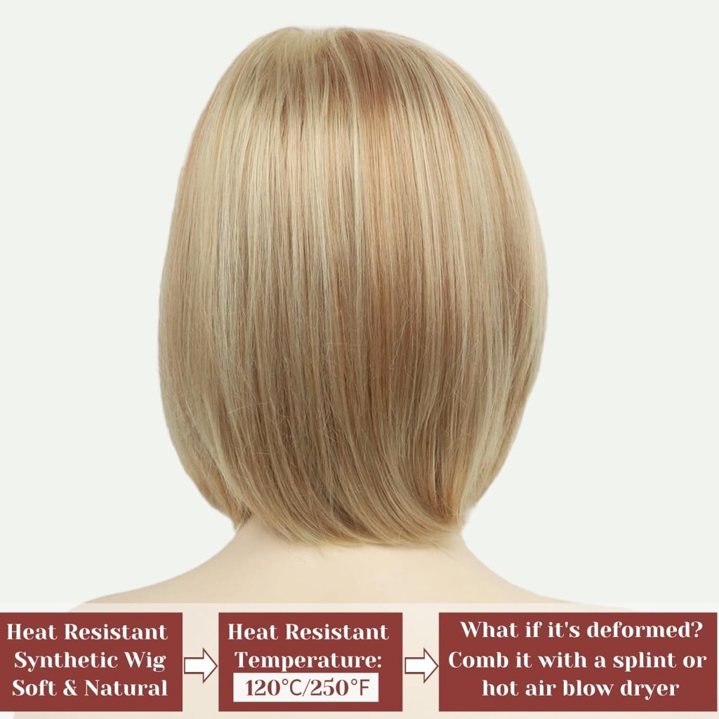 Short Brown Bob Wigs for Women Brown Mixed Blonde Synthetic Wig