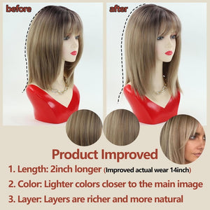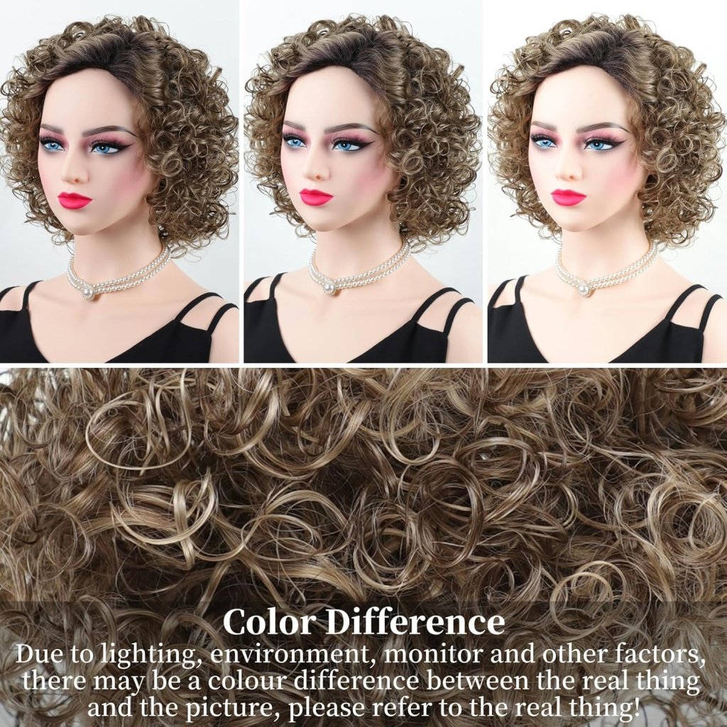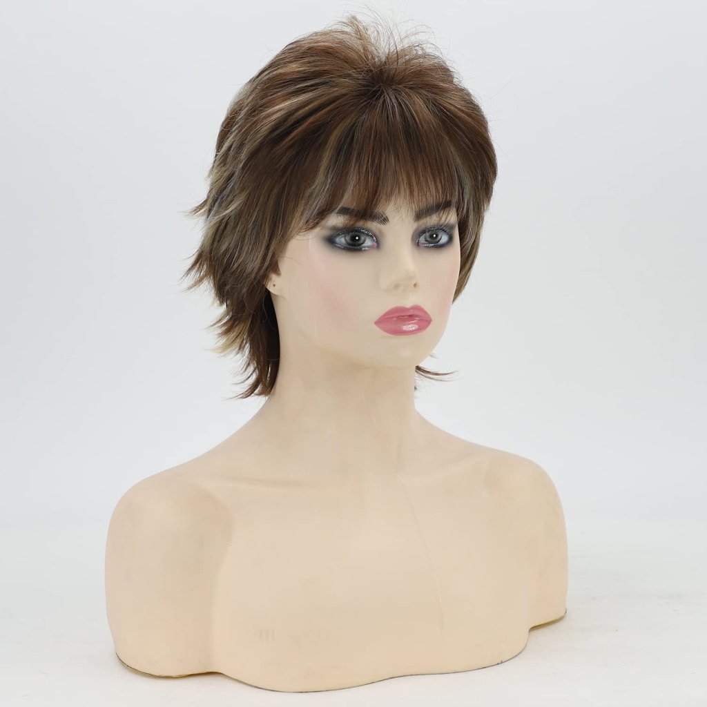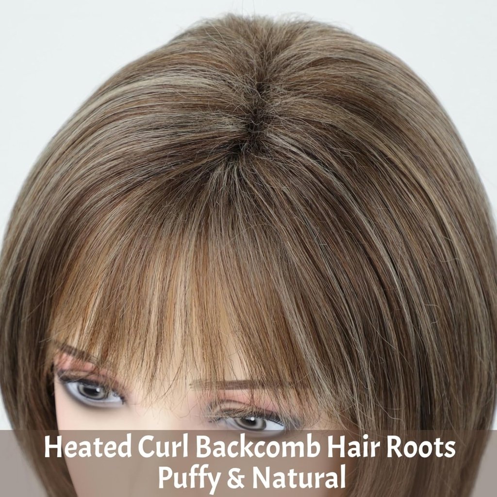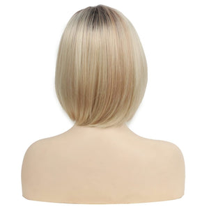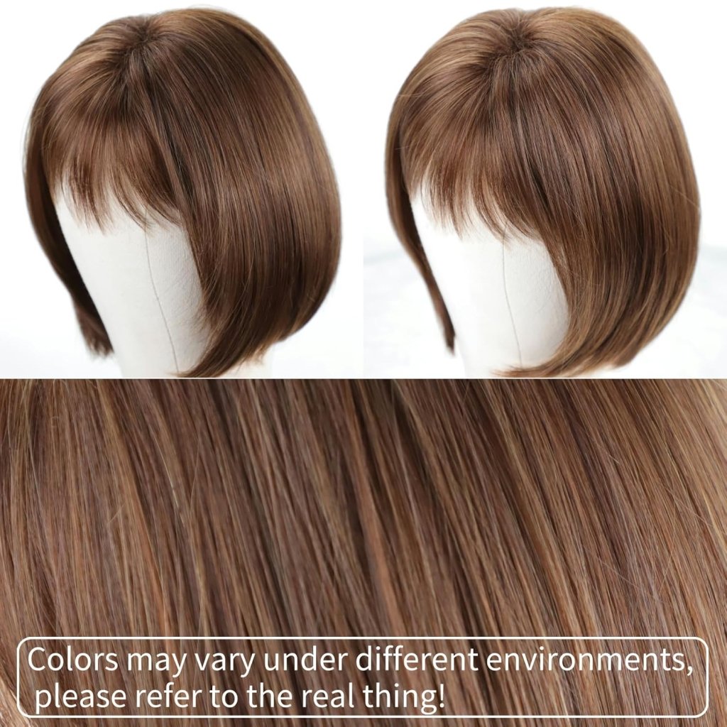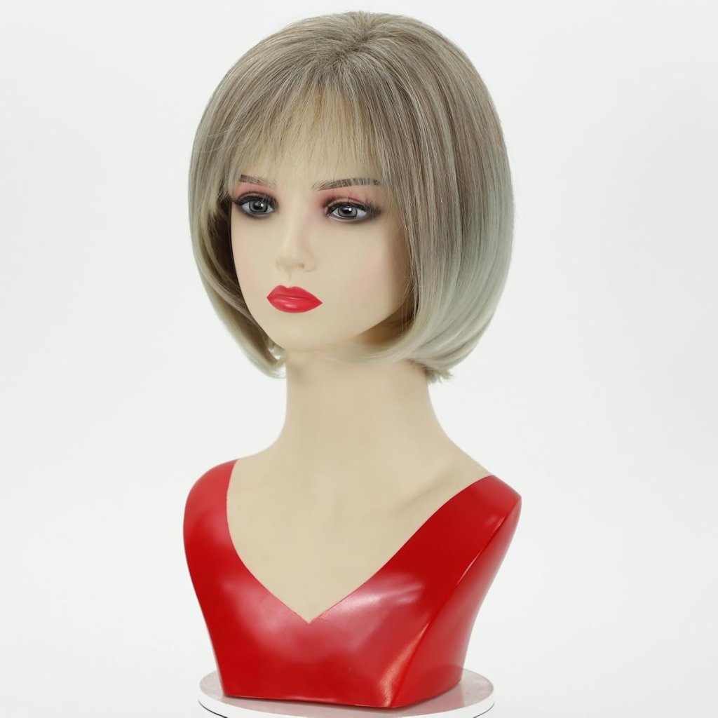 Short Brown Bob Wigs for Women Brown Mixed Blonde Synthetic Wig