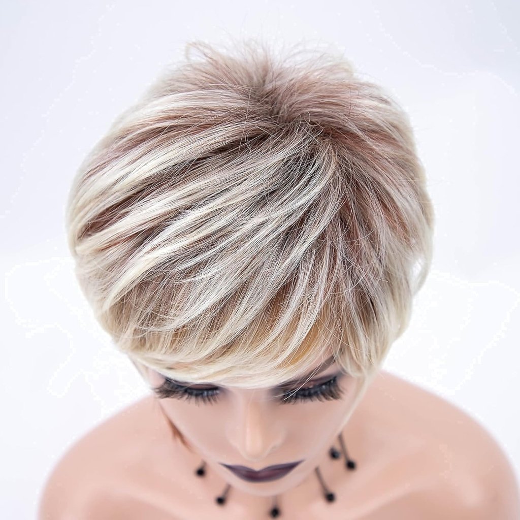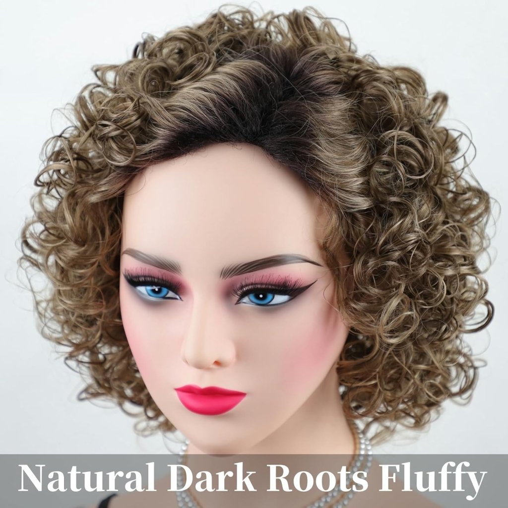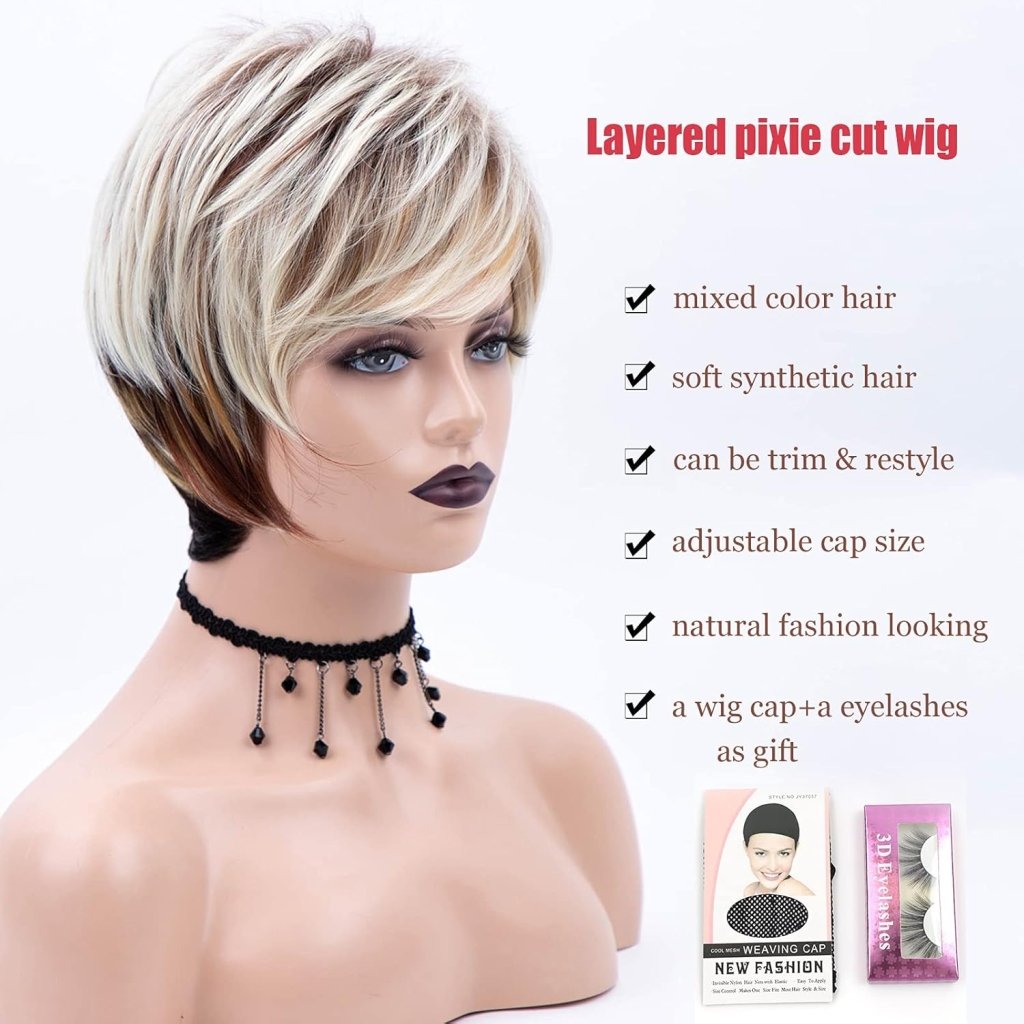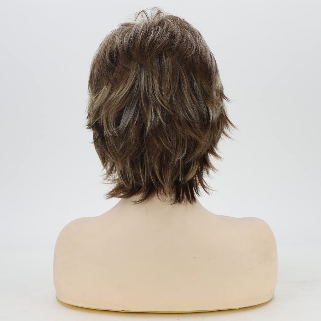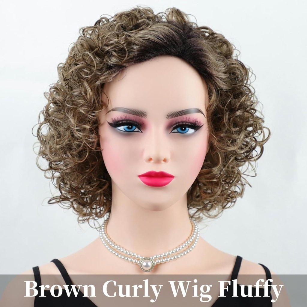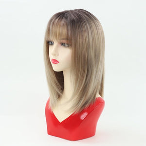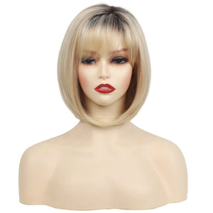 Short Brown Bob Wigs for Women Brown Mixed Blonde Synthetic Wig
