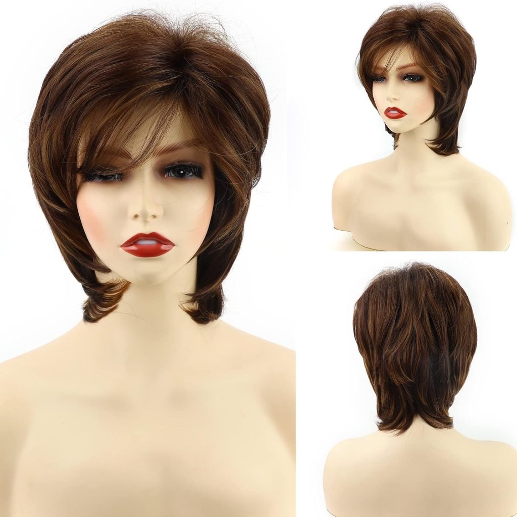 - This short wig has both brown versatility and gold fashion in color. The whole color is very popular chocolate red brown, showing temperament and gentleness