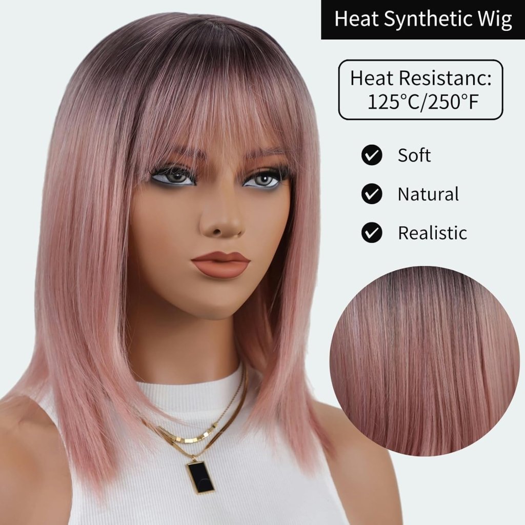 - The brown bob wig adopt the quality heat resistant synthetic fiber, soft and natural, not fake and too shinny, minimum shedding and tangle, very close your own hair