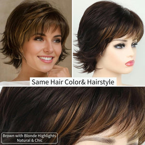 - The brown short wig is natural looking, you can wear it do anything you want like dating, wedding, working, photo, daily use, party even just for fun, shake it and comb it with finger can wear it to go, easily to get compliments from others