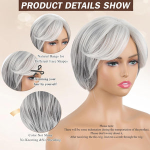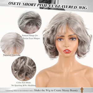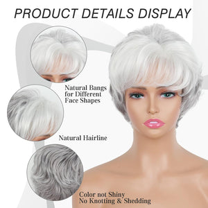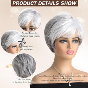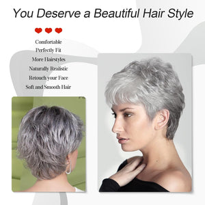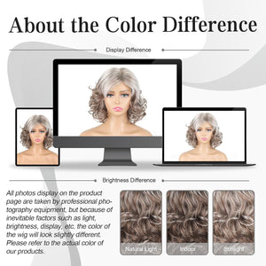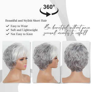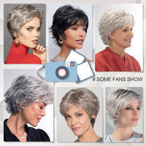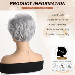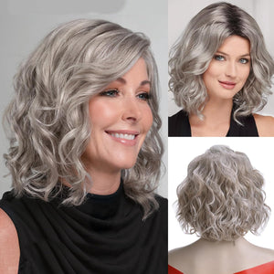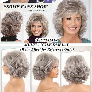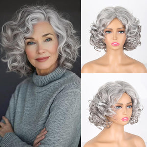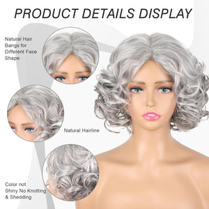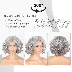Short Gray Curly Wigs for White Women Curly Grey Hair Wig