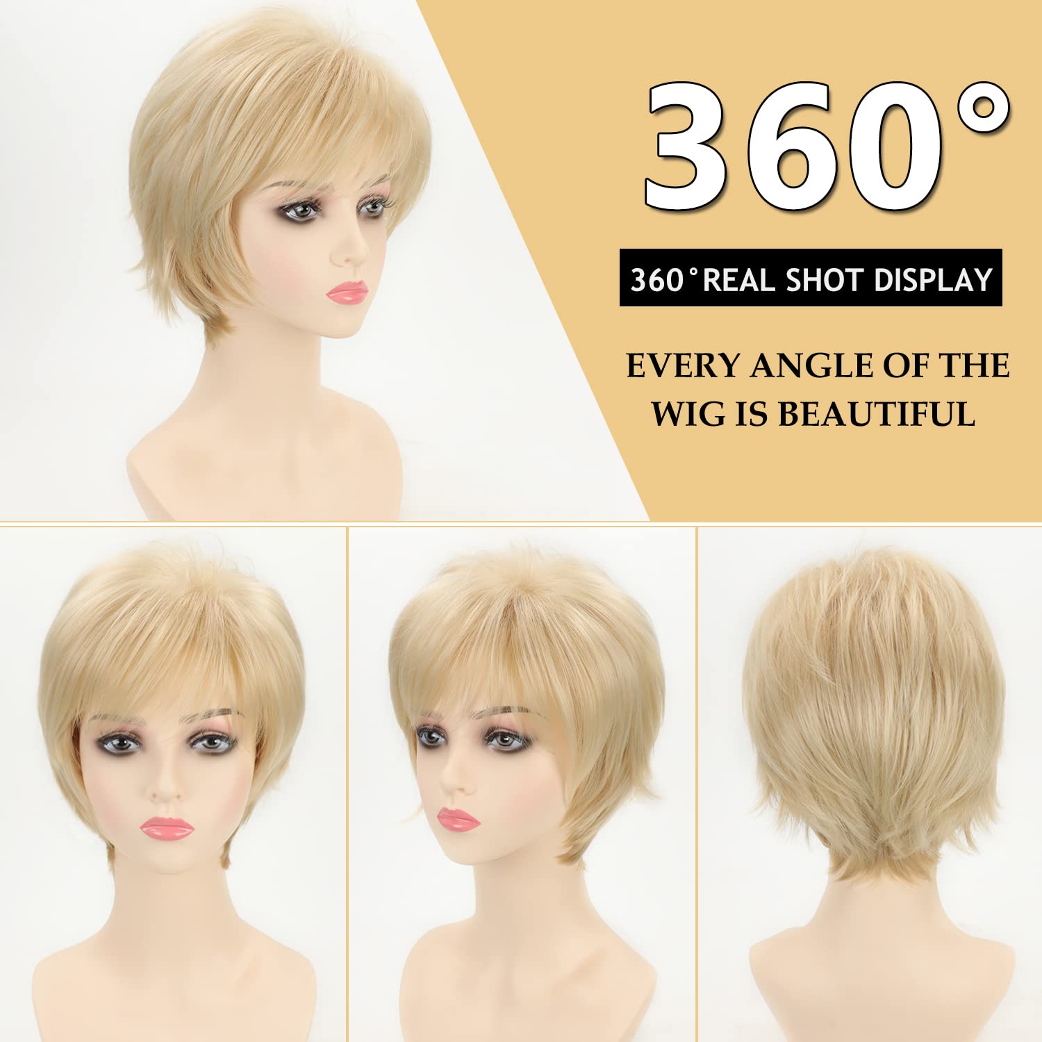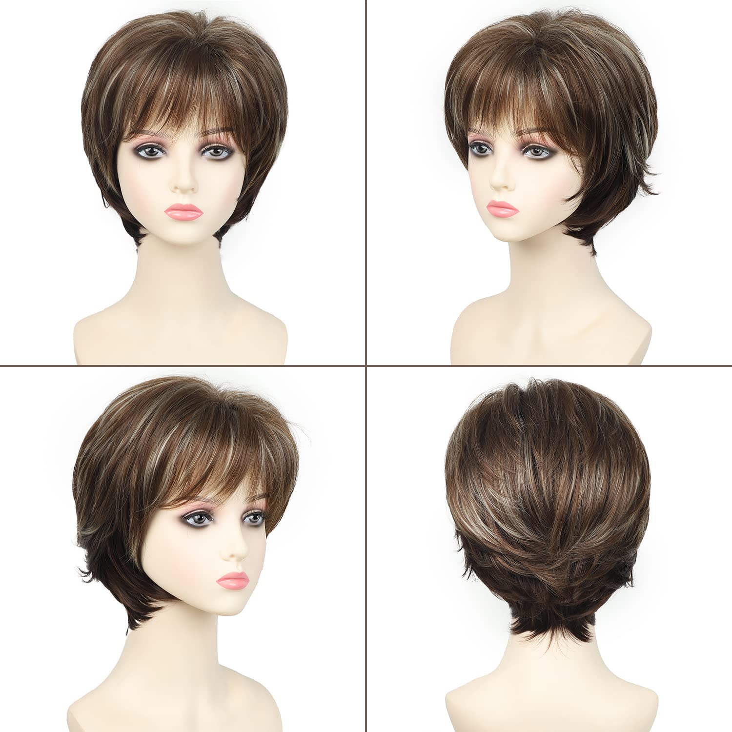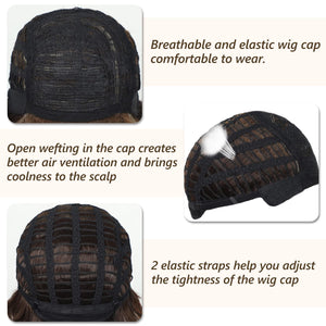 - Material: This short blonde mixed brown wig adopt the top quality heat resistant 100% human hair fiber, which is very suitable for long term use, looks natural and fashion