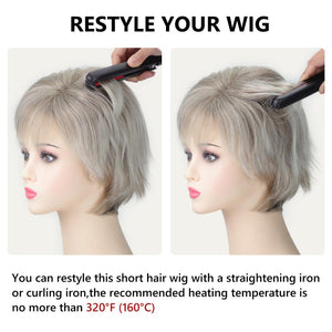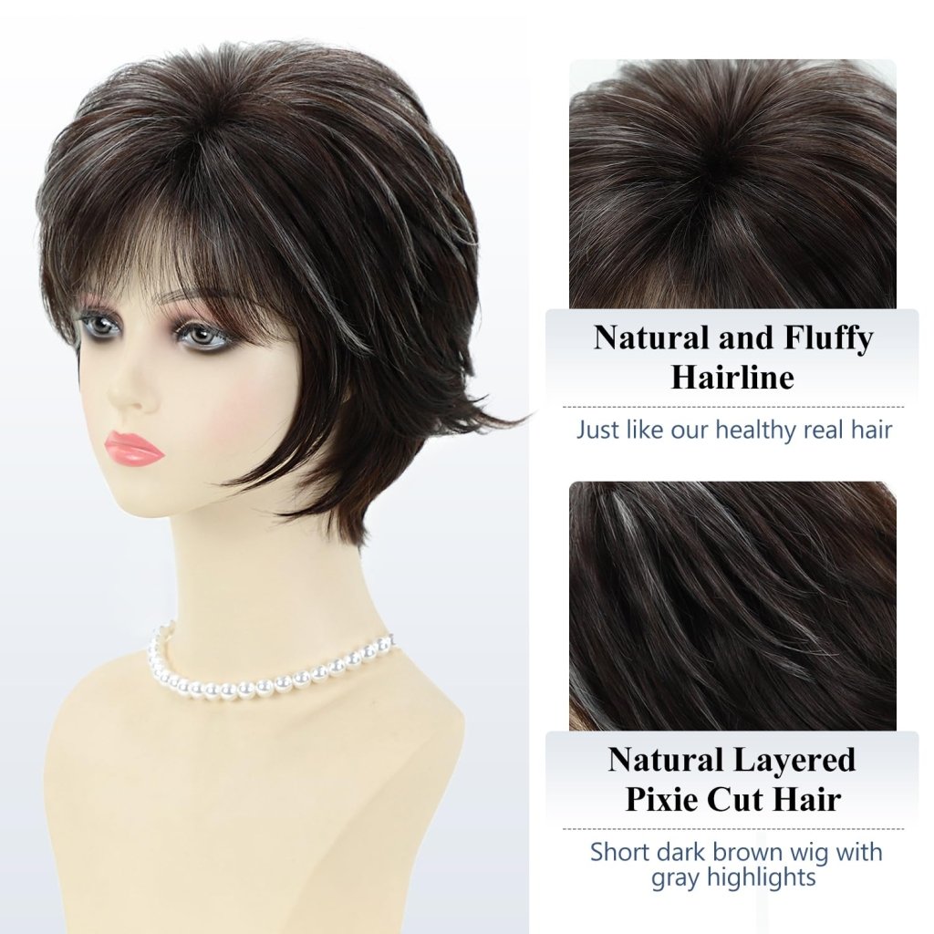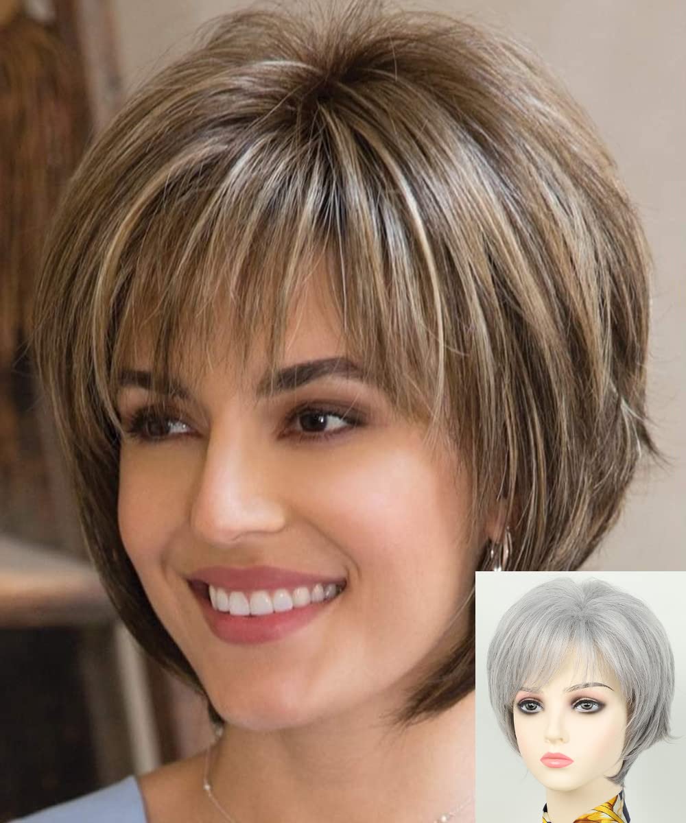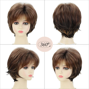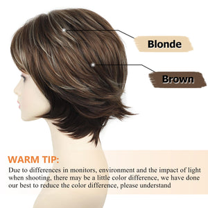 Short Hair Wigs with Bangs Dark Brown Mixed Blonde Pixie Cut Wig for Women Straight 100% human hair Wigs