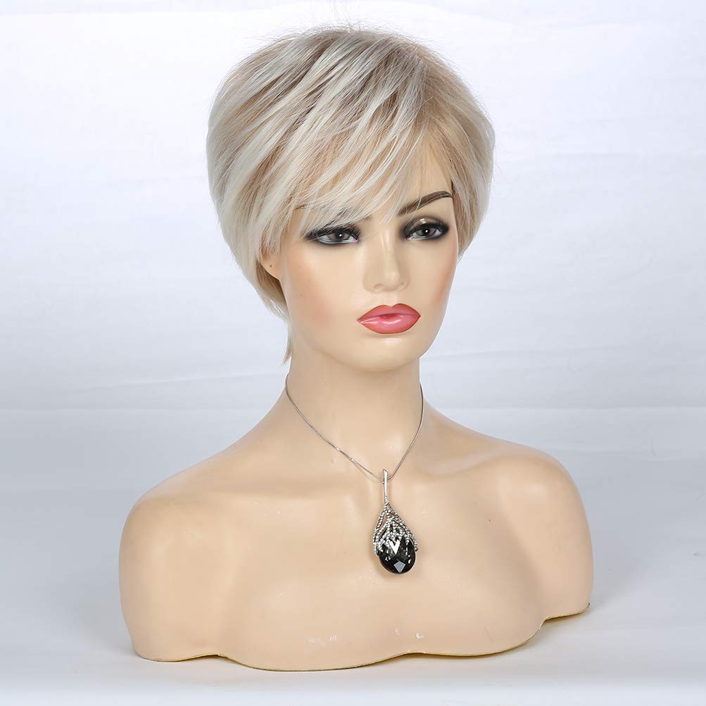 Short Layered Blonde Wigs for Women Synthetic Heat Resistant Pixie Wig with Wig Cap