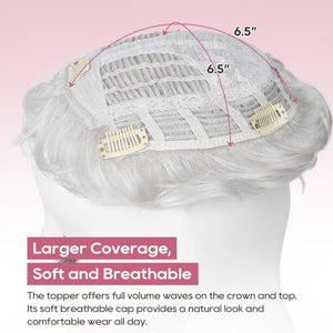 - Seamless Integration: This short, lightweight hair topper seamlessly blends with your natural hair, providing instant coverage for thinning areas on the top and crown while enhancing volume and fullness.