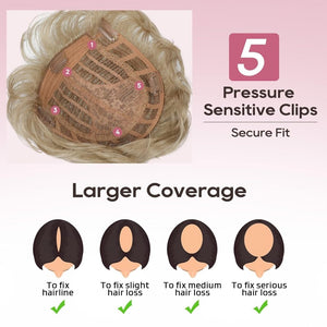 - Secure Fit: Designed with a breathable open-wefted cap and 5 pressure-sensitive clips, this topper offers a comfortable yet secure fit that stays in place all day long, allowing you to style it as desired.