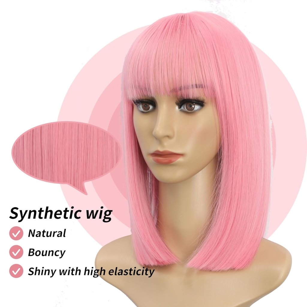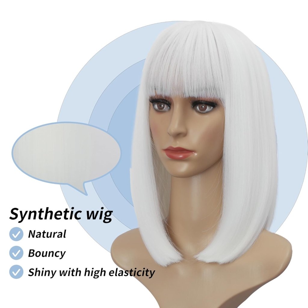- Premium Material: Bob wigs with bangs made of high quality 100% Human Hair heat resistant fiber. Look natural and touch soft,easy to comb,minimum shedding and tangling