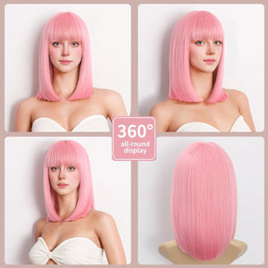 Shoulder Length Straight Bob 100% Human Hair Wig with Bangs Women's Short Bob Wigs