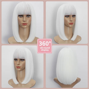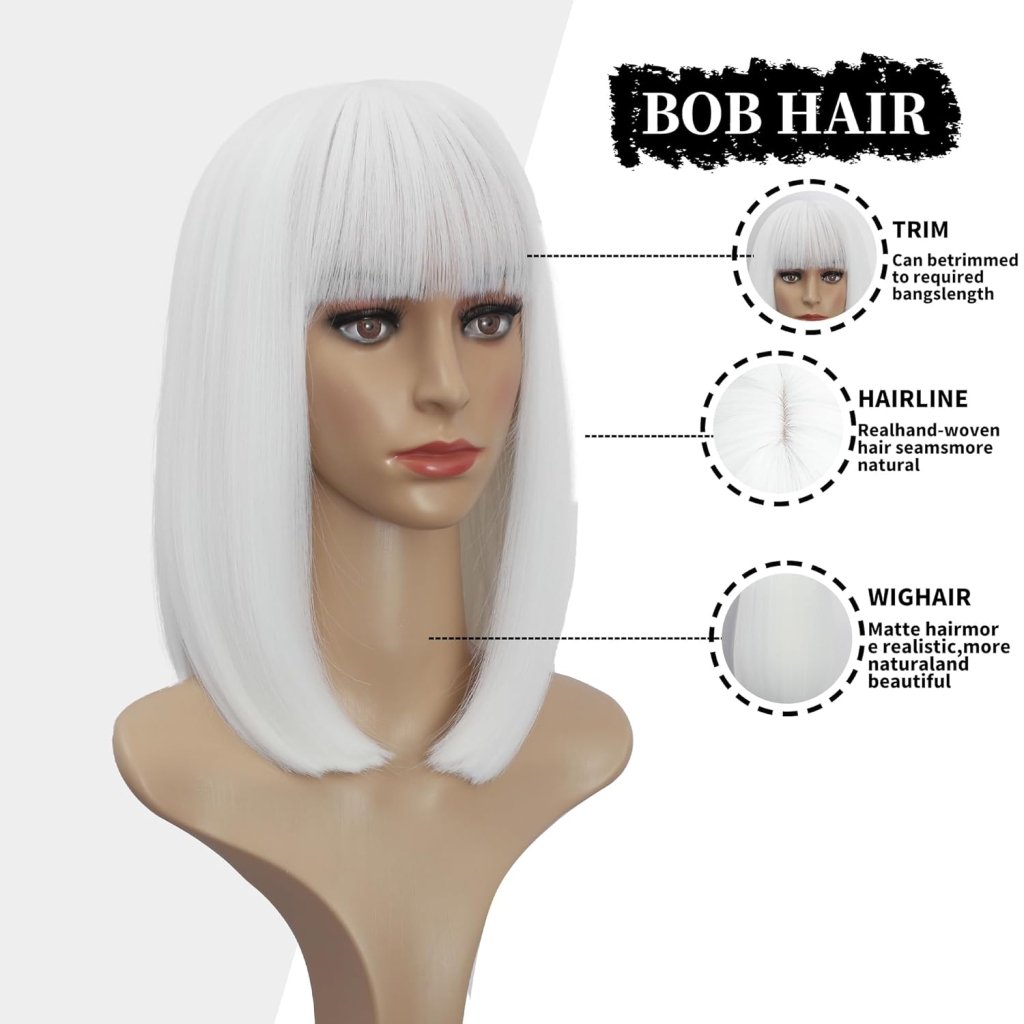 - High-Quality 100% Human Hair Crafted with premium 100% Human Hair materials for a natural, lifelike appearance and texture.Short straight bob wigs with bangs, looks more natural and fluffy