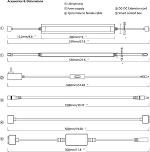 - Easy installation: mounted by adhesive tape or screw and clips. Strip Lights bar dimension:L 12" W 1.5", Need more extension cord, please order it by ASIN,B08MQ5VNV1, Control Box B08N6C1VRB, Extra Lights Bar ASIN B08N655DJC.