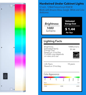 Smart Under Cabinet Lighting Strip Lights White & Color Changing Dimmable Work with Alexa Google Smart Thing Phone App, RGB Multi Colored Lamp for Kitchen Counter Light Fixture (6 Lights Bar Kit)