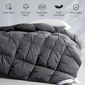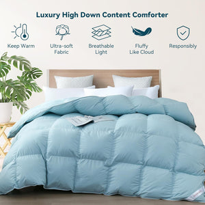 - Premium Down & Feather Filling: filled with natural down and feather, warm, fluffy and comfortable. All of our comforters are made with high-quality down and feather, which are certificated by OEKO-TEX Standard 100, RDS and DOWNPASS. So you can rest assured to use our down comforter
