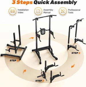 - 【Easy Assembly】The clear instructions and well-labeled parts made the process smooth and hassle-free. You can set it up in no time and start your workout immediately. The Sportsroyals power tower pull up bar dip station is easy to assemble.