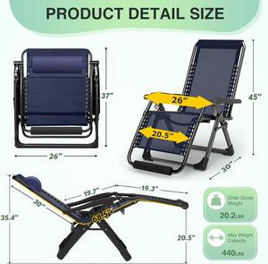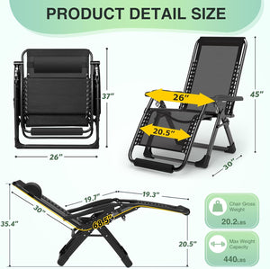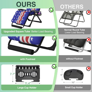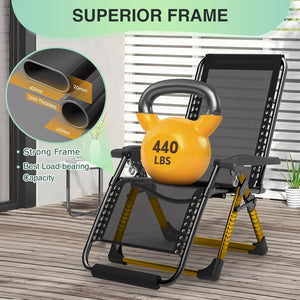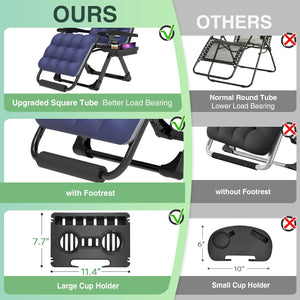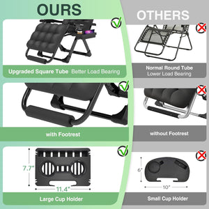 - 【Premium Material & Max Weight Capacity of 440LBS】The upgraded oversized zero gravity chair is designed to withstand up to 500 pounds. The 40mm (1.6 inches) thick steel tubing ensures the chair remains stable and wobble-free, enhancing its load-bearing capacity and durability, especially suitable for outdoor patio use. The upgraded texlin fabric, double elastic straps, breathable mesh, and removable cushions provide additional comfort