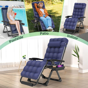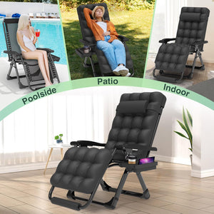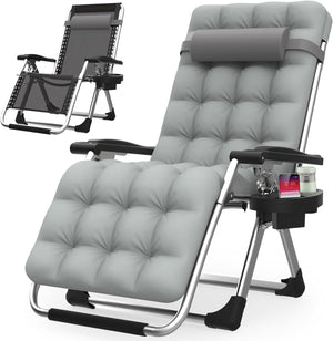- 【4" Thicker Cushion, Cup Holder Pillow】The zero gravity lounge chair with a 4" cushion provides enhanced softness and comfort. The cushion is detachable, ensuring good ventilation even in the summer, making it suitable for use in both winter and summer. The multifunctional cup holder provides storage for items such as phones, water bottles, keys, and more. The upgraded padded pillow provides you with a comfortable experience