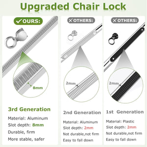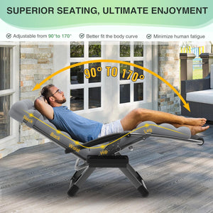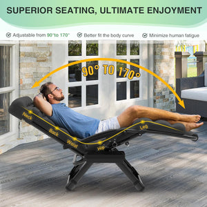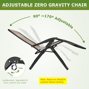 - 【Upgraded Lock, True Zero Gravity】 The upgraded aluminum alloy lock makes adjusting the chair from 90° to 170° much easier. The 8mm deep grooves securely lock the recliner in place, The 8mm deep groove locks the recliner more securely and is more durable than the previous 2mm plastic or aluminum buckle. This ensures a safer and more secure use, preventing any accidental dislodging. The anti gravity chair elevates up to 20" off the ground, achieving a true zero gravity angle
