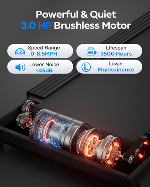 - 𝐐𝐔𝐈𝐄𝐓 𝐁𝐑𝐔𝐒𝐇𝐋𝐄𝐒𝐒 𝐌𝐎𝐓𝐎𝐑 - UMAY improved brushless motor with max 3.0 HP provides efficient, reliable, and low-maintenance operation, while providing speeds of 8.7 MPH and emitting only 40-65 dB of noise, ensuring your workouts won't disturb your downstairs or next-doors.