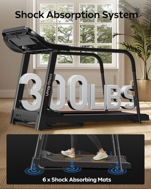 UMAY Fitness Home Folding Incline Treadmill with Pulse Sensors, 3.0 HP Quiet Brushless, 300 lbs Capacity (Black or Gray)