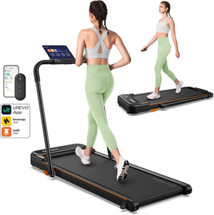 UREVO Strol 2E Smart 2-in-1 Folding Treadmill, Compact Walking Pad with Safety Handle, Plug and Play, Dual LED Display, Workout APP, Walking or Running for Home Office, Remote Included