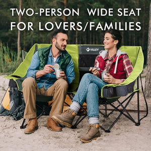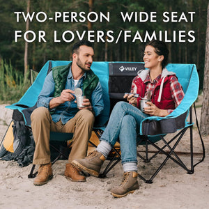 VILLEY Double Camping Chair w/Cooler Bag, Extra Wide Loveseat, Heavy Duty Padded Camping Couch, Portable Folding Chair w/Carry Bag Steel Frame Cup Holders for Camp Lawn Picnic Sports, Support 600LBS