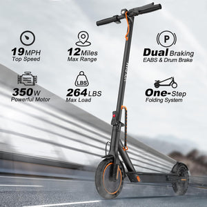 - 👍Improved Motor: The 350W motor provides high torque but maintains a low power consumption. The e scooter reaches a top speed of 19mph and can handle up to 264lbs. This new and improved motor will make your riding faster and safer.
