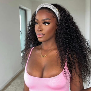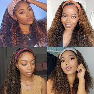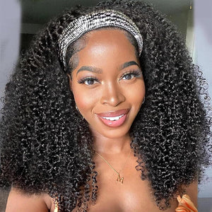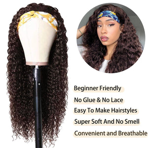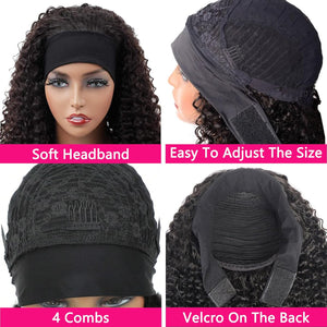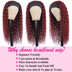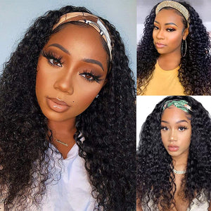 - 100% Brazilian Virgin Human Hair Headband Wigs deep wave,No Glue,No Sew In,Non Lace Front Wigs Machine Made Headband Wigs For Black Women.No Tangle,No Shedding,No Smell,Soft, Healthy,Can Be Straightened,Curled,Bleached,Dyed,And Styled As Your Own Hair