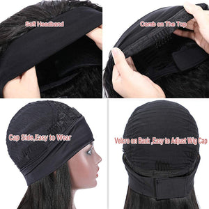- Headband Wigs Size Adjustable: Cap Size - There are clips in the front and Velcro in the back. Average water wave wig cap (Circumference:22.5") Fits most head sizes. The straps are strong, not easily deformed