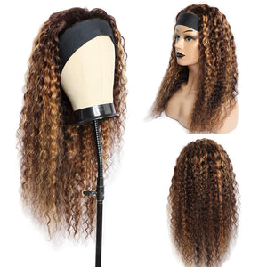 Wig Deep Wave 12 Inch Human Hair Headband Wig Machine Made No Lace deep Curly Headband Wig Natural color