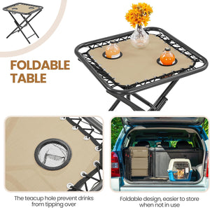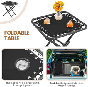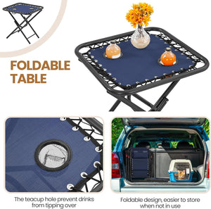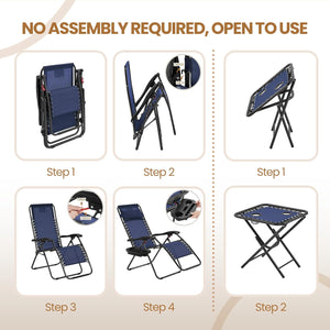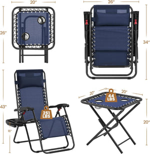 - 3pcs Texteline Outdoor Set: This outdoor Texteline foldable set comprises a pair of folding zero gravity camping recliners and a side table. Featuring excellent weather resistance, durability, and high portability, this set is ideal for family to have camping or motorhome travel